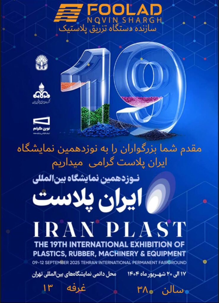 با افتخار در نوزدهمین دوره نمایشگاه بین‌المللی ایران پلاست حضور خواهیم داشت. از شما دعوت می‌کنیم تا با بازدید از غرفه ما، با جدیدترین دستگاه‌های تزریق پلاستیک و فناوری‌های روز دنیا آشنا شوید.